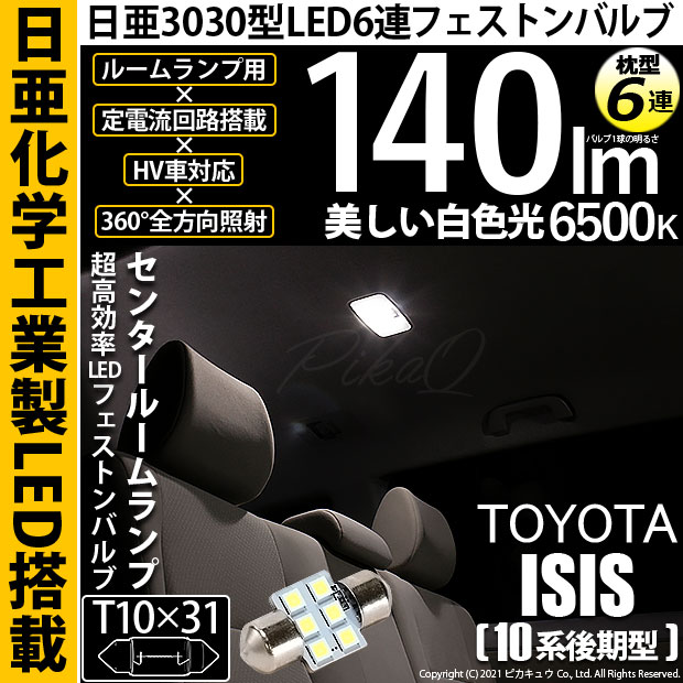 【即納】【メール便可】トヨタ アイシス[10系 後期モデル]対応 センタールームランプ用LED T10×31 日亜3030 6連 ...