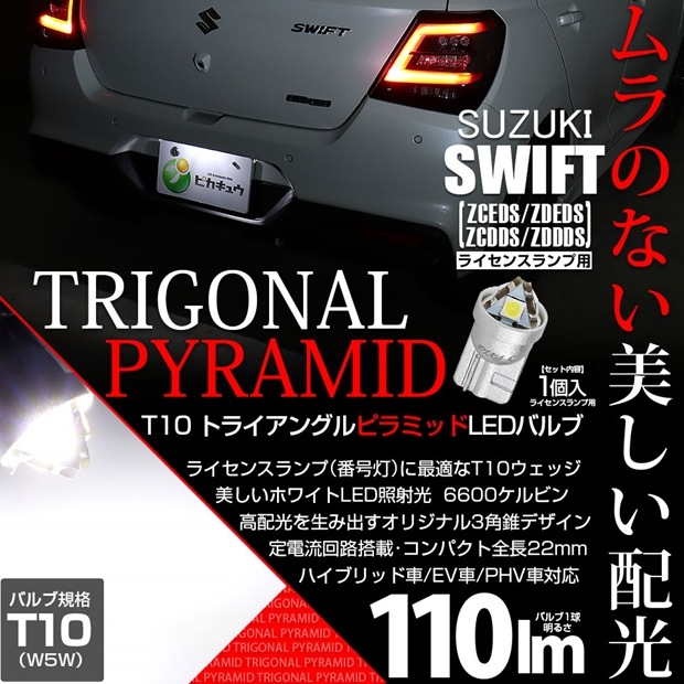 【即納】【メール便可】スズキ スイフト[ZCEDS]対応 ライセンスランプ用LED T10 トライアングル ピラミッド 110l...