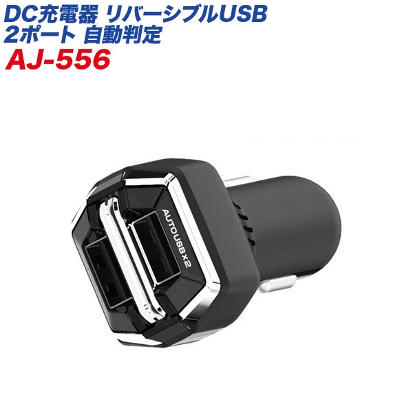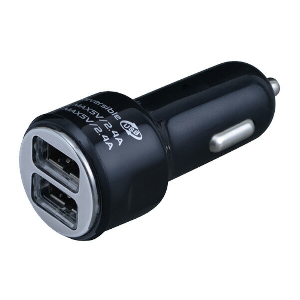 リバーシブルUSBポート×2 2.4A 自動判定 12V/24V車対応 ブラック シガーソケット/カシムラ AJ-556