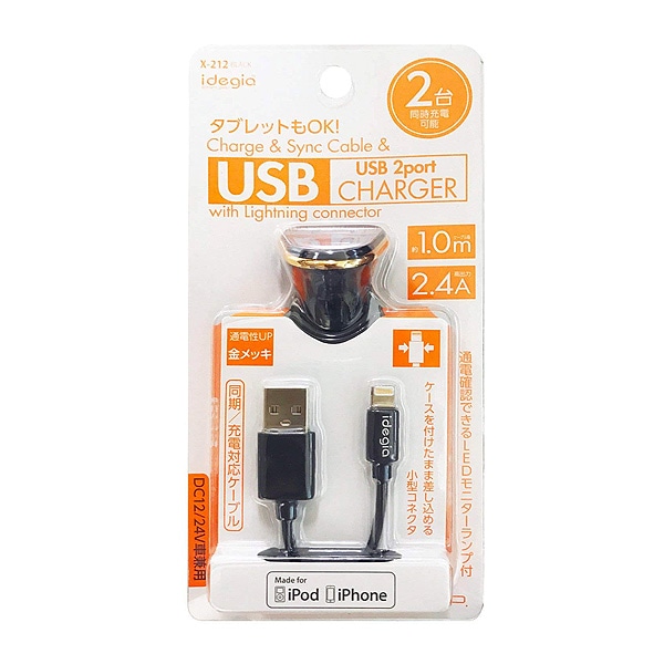 アークス 2.4A 2USBポート&ライトニングケーブル DC12/24V車 同期・充電対応ケーブル LEDモニターランプ付 X-...