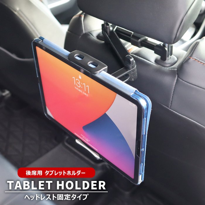 後部座席 車載タブレットホルダー ヘッドレスト固定 汎用 スマホホルダー 自動車 後席 スタンド 伸縮アーム カー用品 黒 ブラッ...