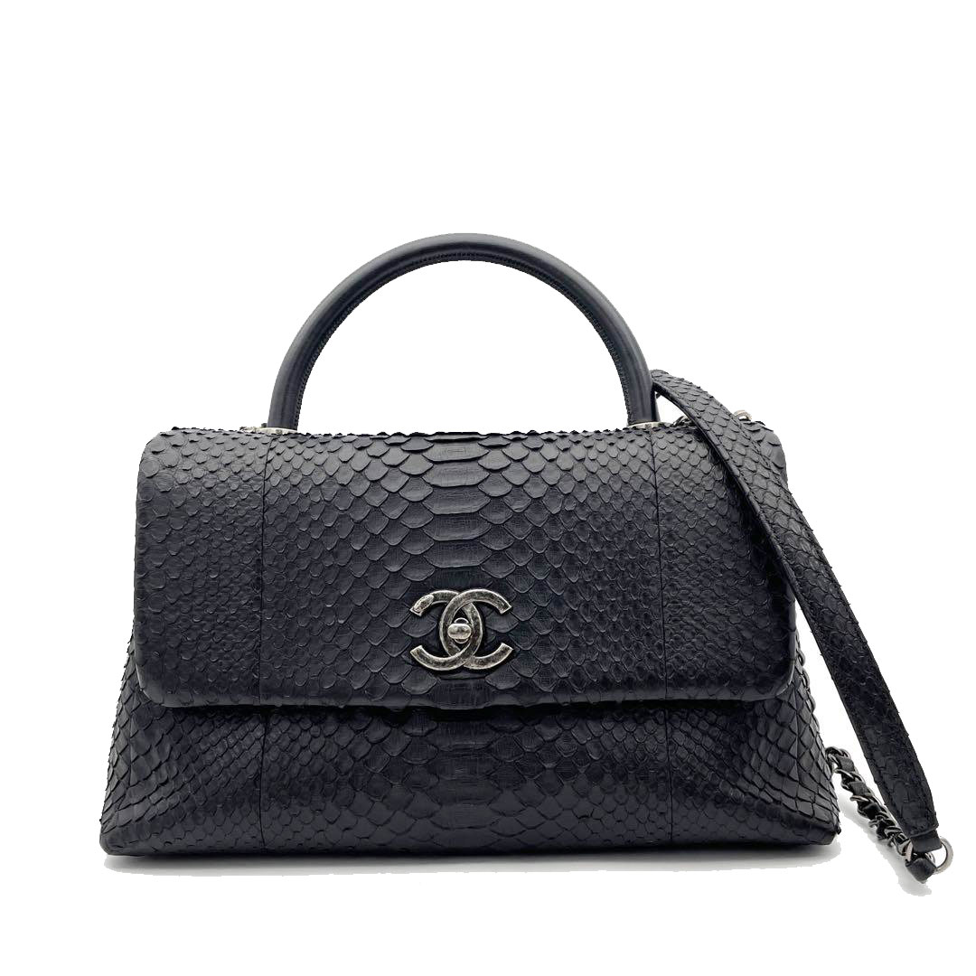 CHANEL シャネル ココハンドル 2WAYハンドバッグ パイソン ブラック いぶしシルバー金具 23番台
