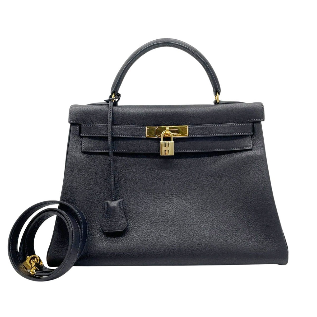 HERMES エルメス ハンドバッグ ケリー32 内縫いトゴ ダークネイビー系 ゴールド金具 □A刻印