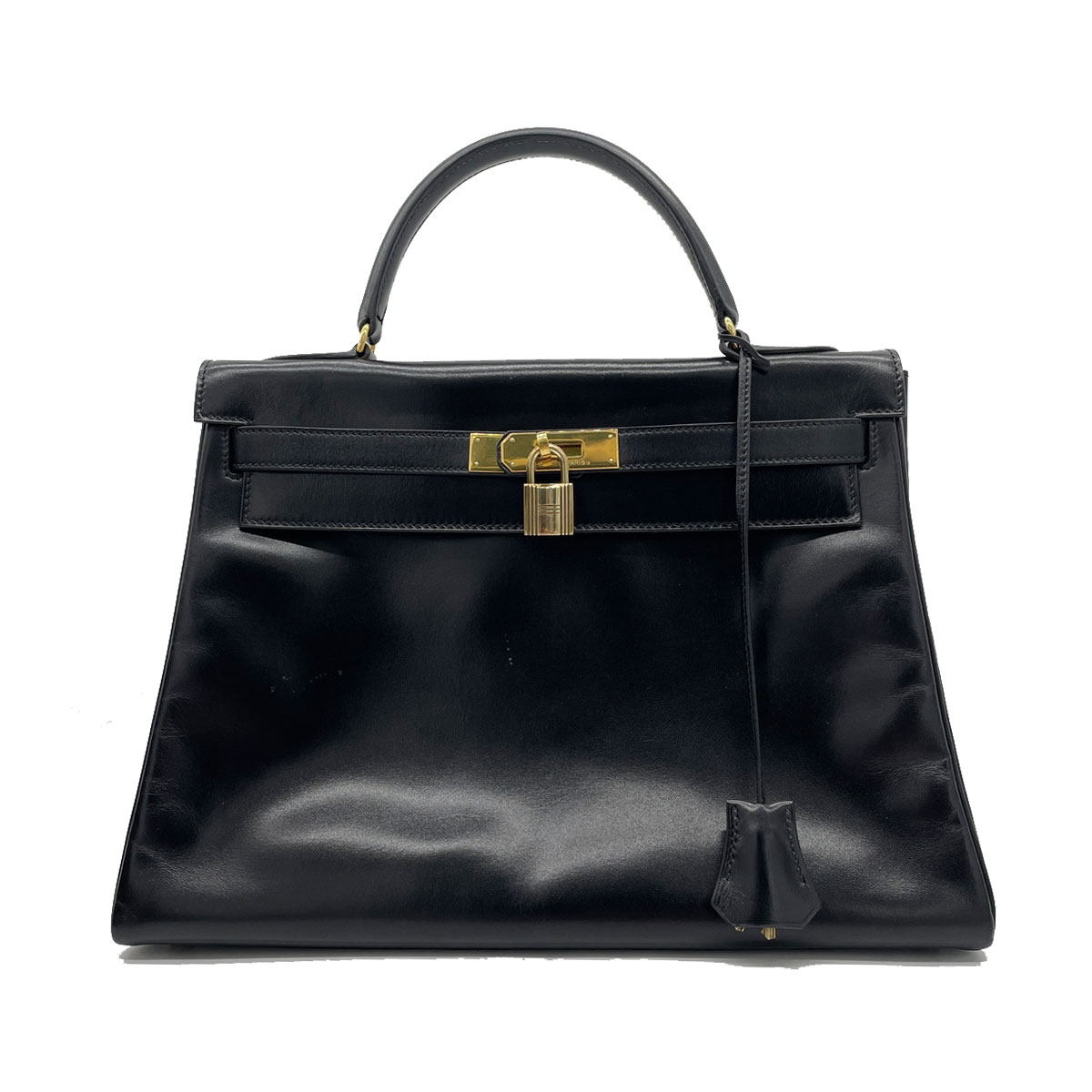 HERMES エルメス ハンドバッグ ケリー32 内縫い ボックスカーフ ブラック ゴールド金具 〇Q刻印