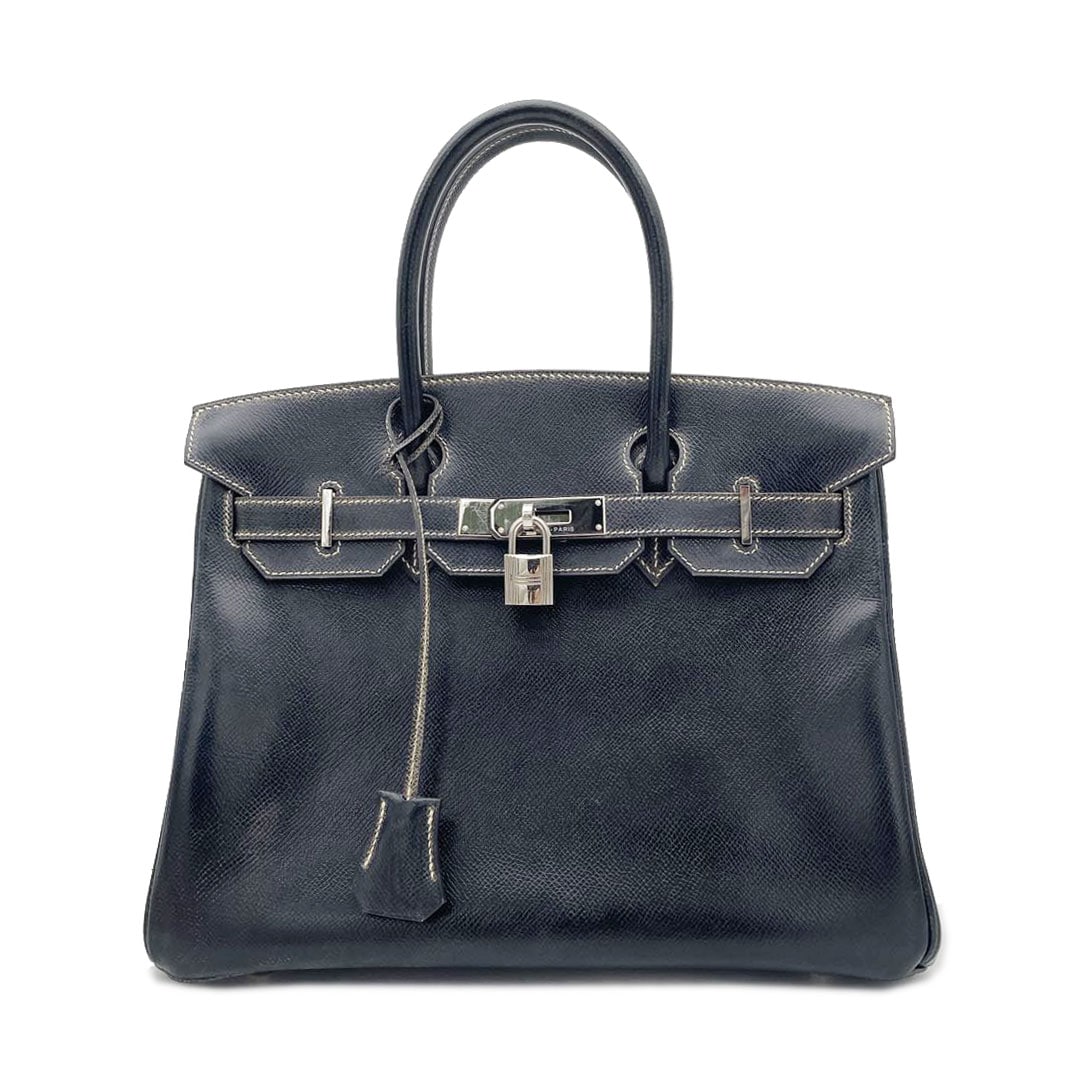 HERMES エルメス バーキン30 ハンドバッグ クシュベル ブラック(ホワイトステッチ) シルバー金具 □E刻印 パーソナルオ...