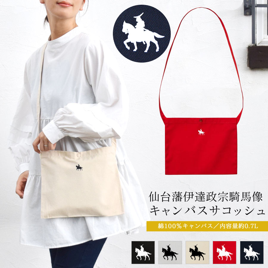 サコッシュ 仙台藩 伊達政宗 騎馬像 プリント レディース メンズ ユニセックス キャンバス 軽量 【送料pt100】
