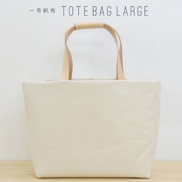1号帆布 トートバッグ Lサイズ 横長 canvas キャンバス 極厚 ヌメ革 シンプル 綿 コットン 名入れ 刻印