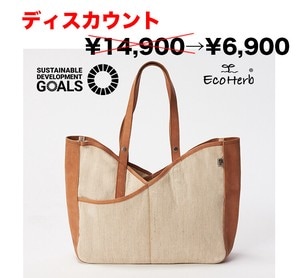 【Eco Herb】【サスティナブルなジュートバッグ】本革x綿麻頒布トートバッグ(台形型)裏付き-D