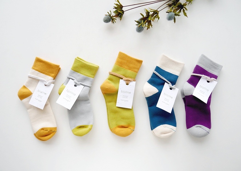 【biollne(ビオルネ)*オーガニックコットンパイル編み配色ラインソックス ス(6色)】