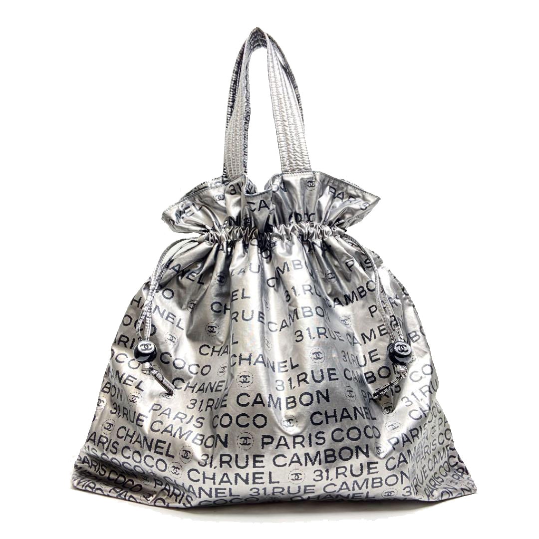 CHANEL シャネル アンリミテッド 巾着トートバッグ ナイロン シルバー 12番台(2008年頃製造)