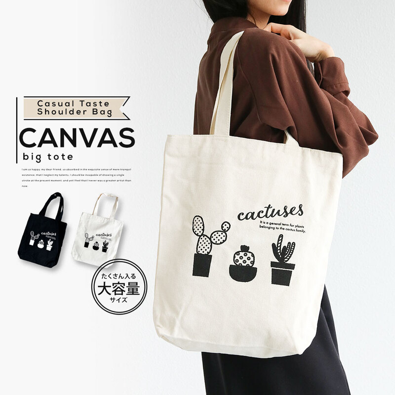 キャンバストートバッグ プリント ビッグトート ショルダーバッグ 大容量 A4対応 通学バッグ マザーズバッグ ファスナー GBM...