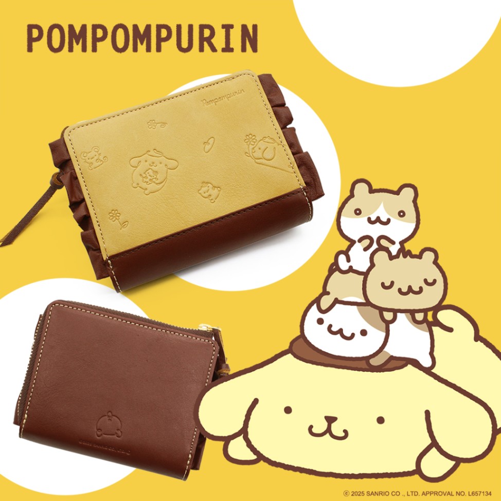 【ポムポムプリン/サンリオ】ポムポムプリン二つ折り財布 本革[pom-002]