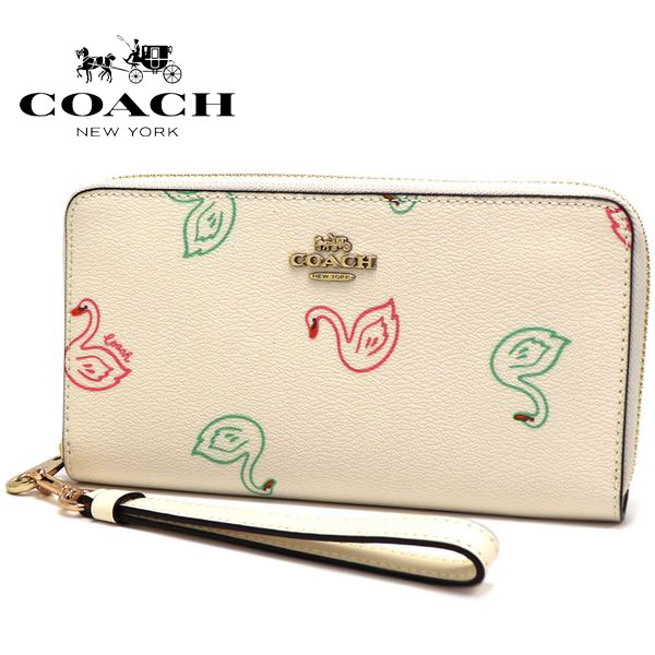 コーチ 長財布 レディース COACH Wallet ラウンドファスナー スワン プリント C8384 IMCAH