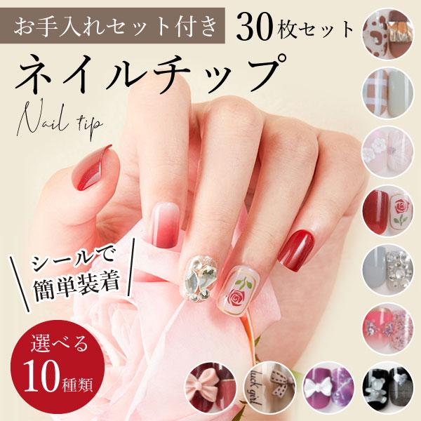 ネイルチップ お手入れセット付き 30枚セット ネイルデコ ネイルアート ネイルシール ネイル ジェルネイル 爪 処理 簡単装着 ...