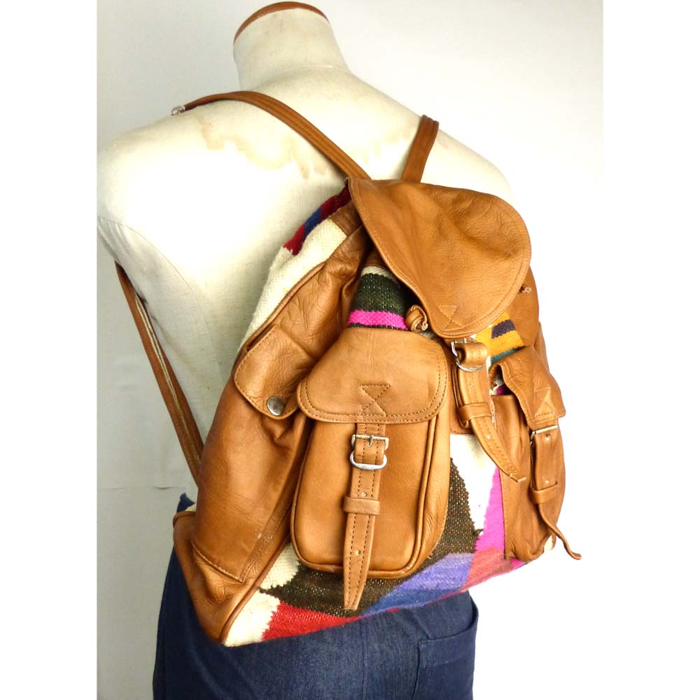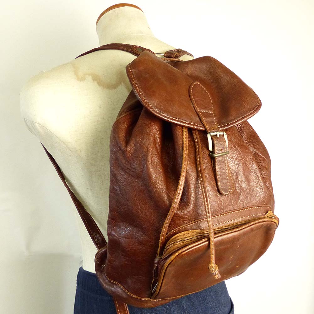 ビンテージ 本革レザー 巾着型 リュック / バックパック【中古】