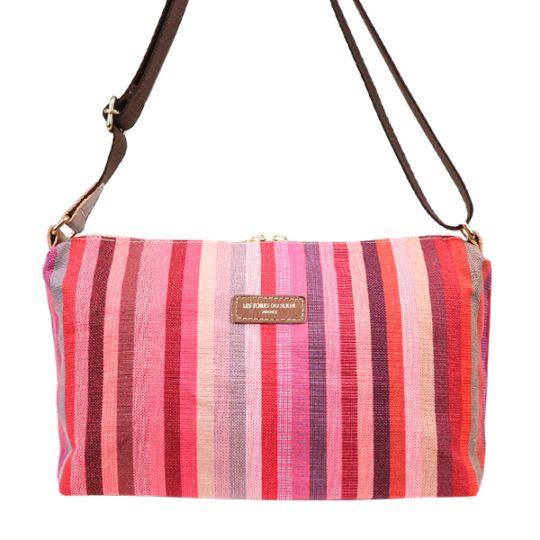キテンゲ 本革ショルダーミニバッグ 18(レッド×ブラウン)軽量タイプ3WAY 斜掛けOK『ニッポンの技×アフリカの色』一点もの