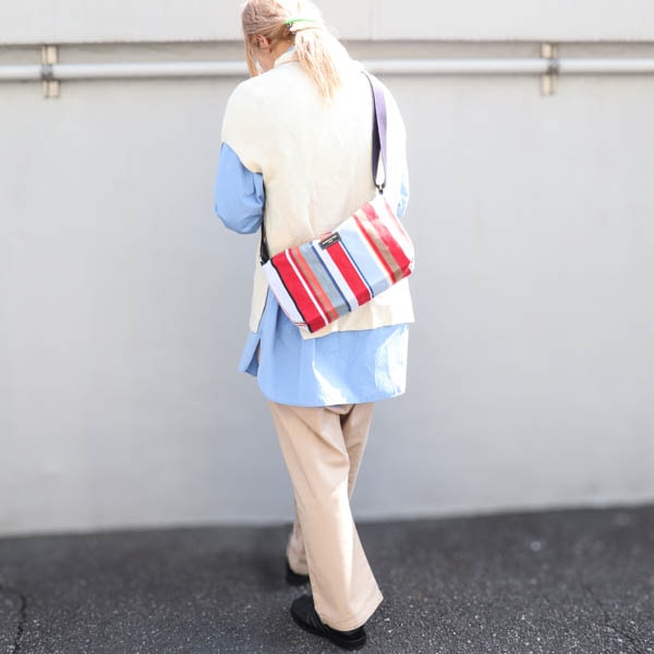 キテンゲ 本革ショルダーミニバッグ 21(ブルー×レッド)キテンゲ◇ハイクオリティ◇軽量タイプ3WAY 斜掛けOK『ニッポンの技×...
