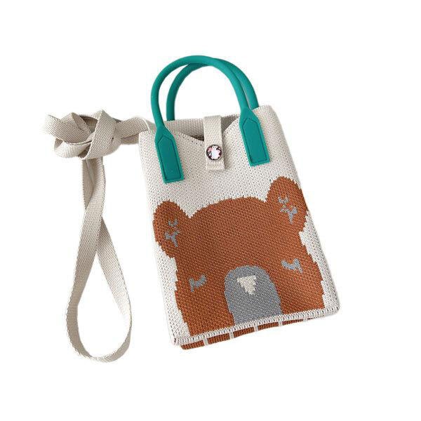 レディース キャラクター柄 ニット ショルダーバッグ ポシェット 紐付き ストラップ付き 多機能バッグ スマホサイズ 可愛い お出...