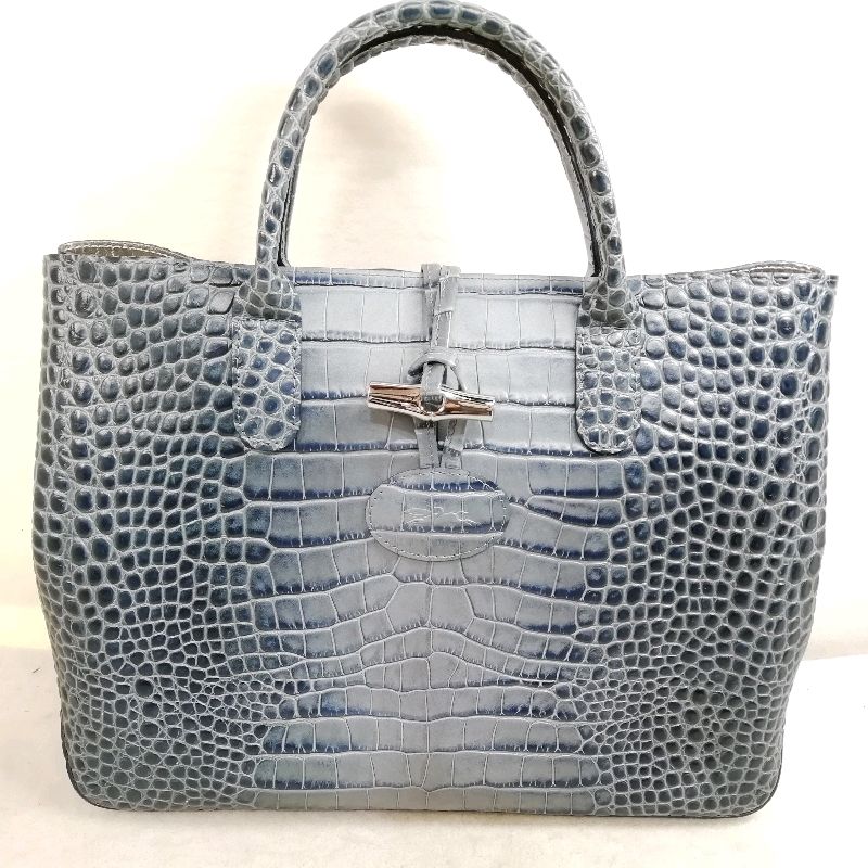 【中古】ロンシャン ロゾ クロコ型押し ブルー×レザー トートバッグ