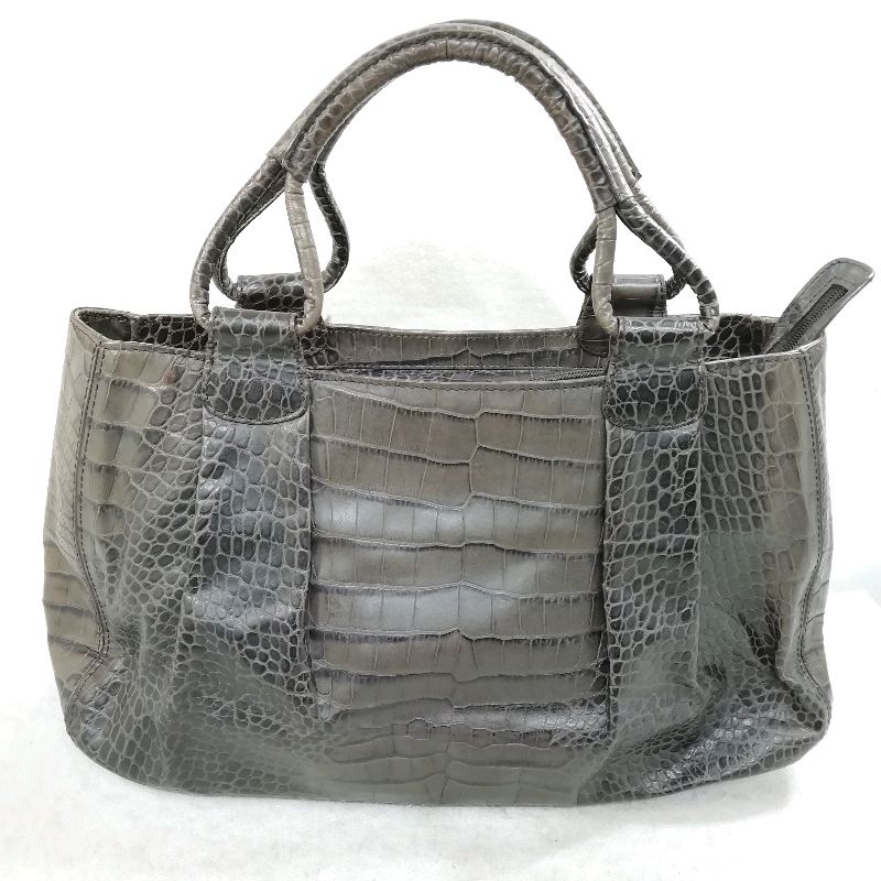 【中古】コールハーン ハンドバッグ クロコ型押し ブラウン×レザー