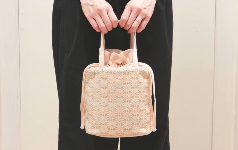 ギュピールレース 巾着型バッグ 約29×25×10cm [Flower Ripples]