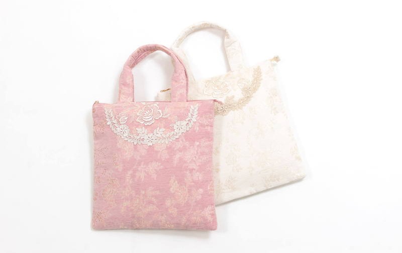 ローズ柄ジャカード織&ギュピール A4バッグ 約35×28cm [gracieux]