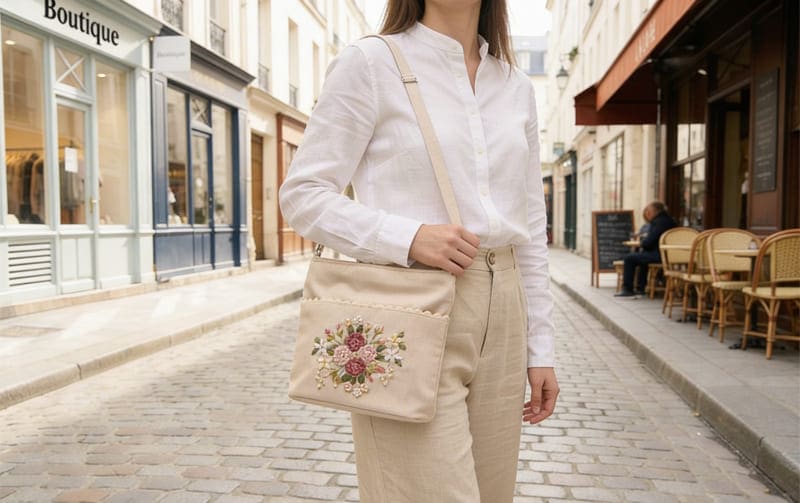 ショルダーバッグ リボン刺繍 約25×22×7cm [Rose Ruban]