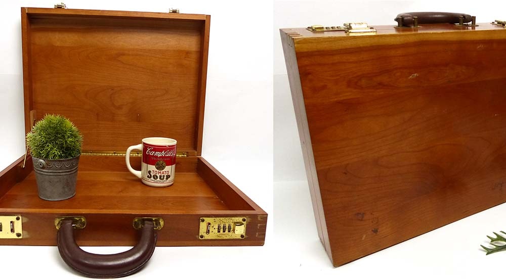 PRESTO社製ダイヤルロック 木製ウッド アタッシュケース / ビジネスバッグ トランク 【中古】