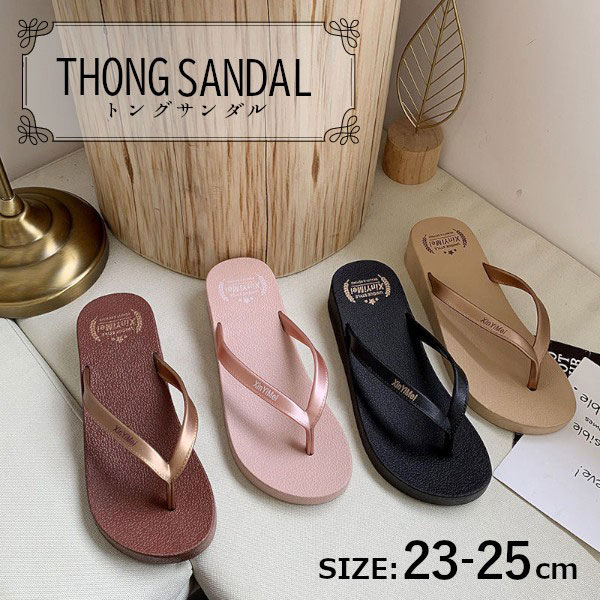【セール】【即納】レディース ファッション トングサンダル ビーチサンダル ヒール 厚底 サンダル 合皮素材 ビーサン ウェッジソ...