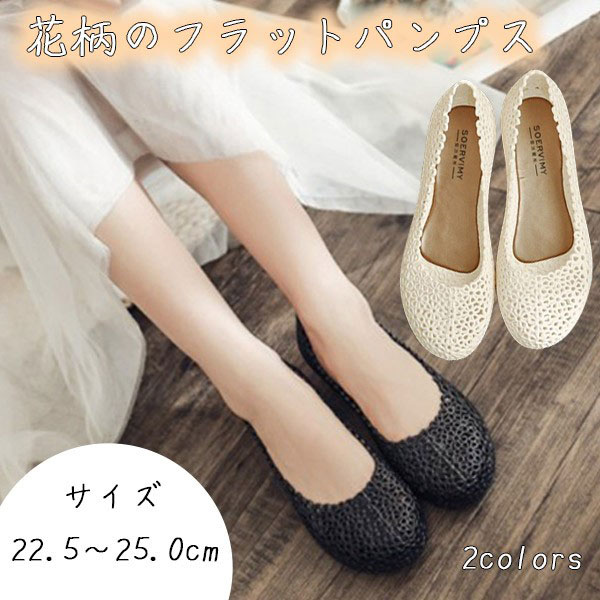 レディース ラバーパンプス インヒール サンダル シューズ ぺたんこ ビーチ レイン ローヒール 花柄 フラワー モチーフ