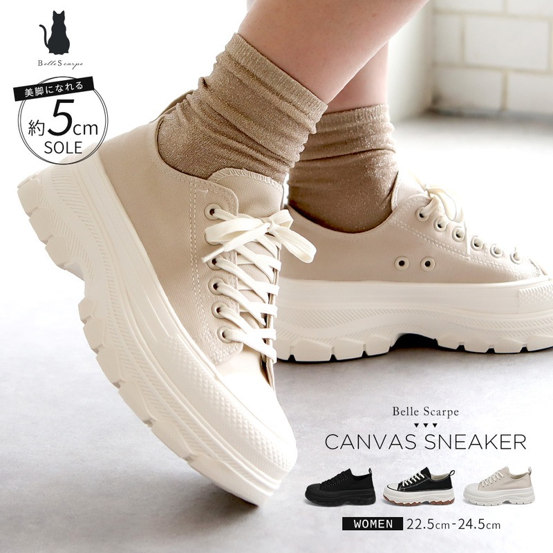 キャンバス スニーカー レディース 厚底 ローカット シューズ 靴 おしゃれ 黒 白 ブラック ホワイト Belle Scarpe...