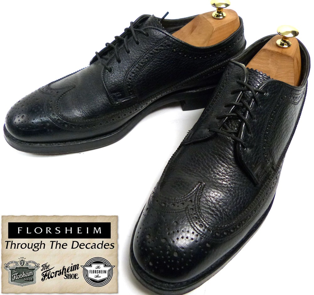 Florsheim フローシャイム シボ革 ロングウイングチップシューズ 8D(26cm相当)(メンズ)【中古】【送料無料】