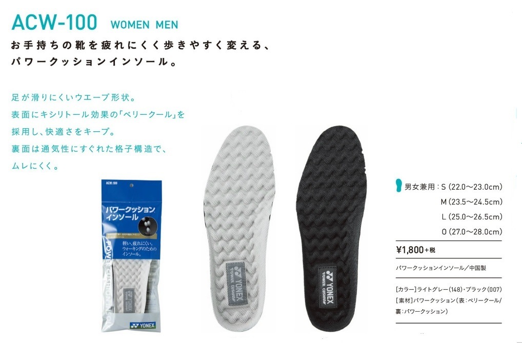 (YONEX ヨネックス) パワークッションインソール ACW-100 軽い疲れにくいウォーキングのためのインソール
