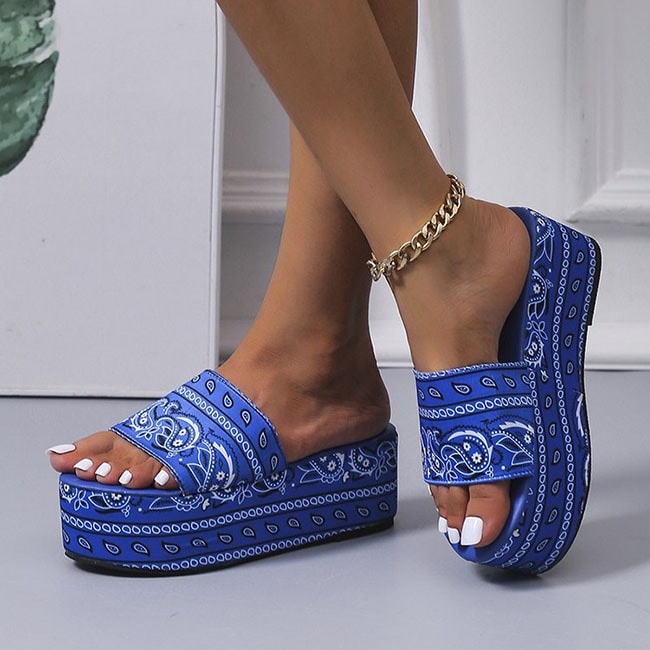 バンダナ柄厚底サンダル ペイズリー スライダーサンダル [BSOD003-1]