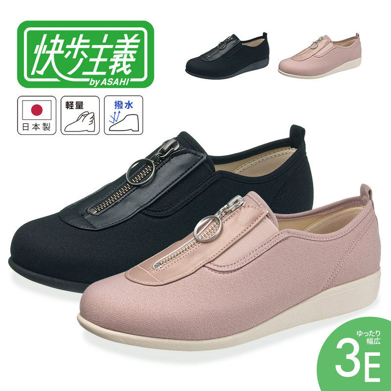 快歩主義 コンフォートシューズ 3e レディース サイドファスナー 履きやすい 女性用 婦人用 軽量 シニア 外反母趾 日本製 黒...