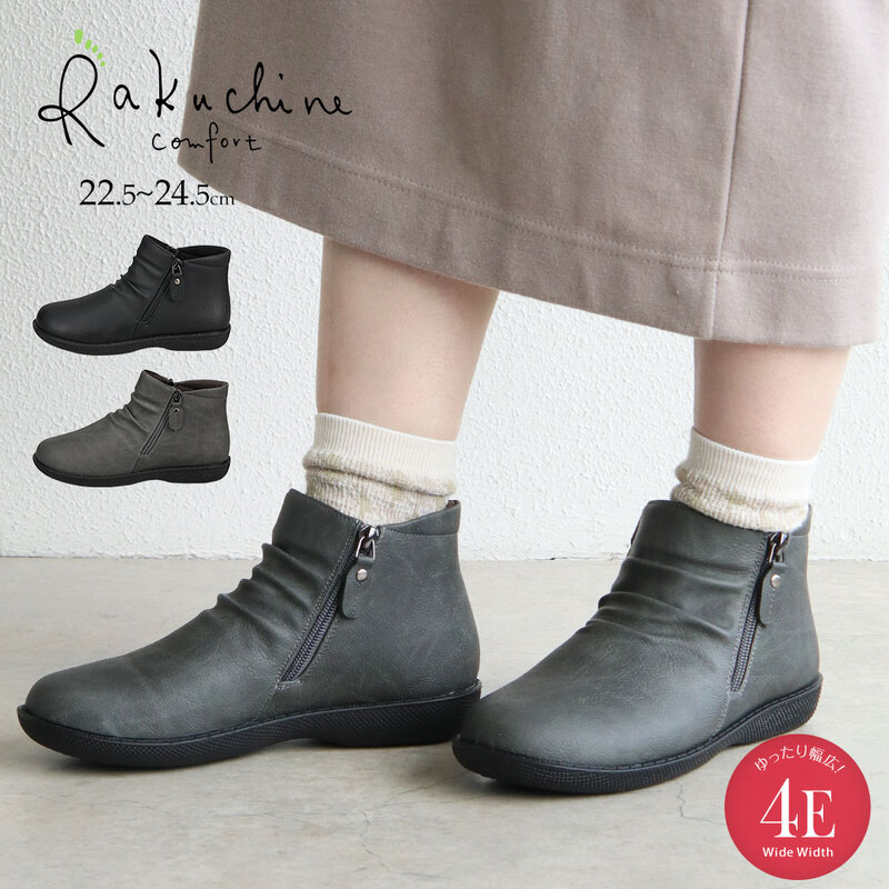 ブーツ ショート レディース 4e 幅広 コンフォートシューズ ファスナー シンプル 女性 母の日 プレゼント 婦人靴 黒 グレー...