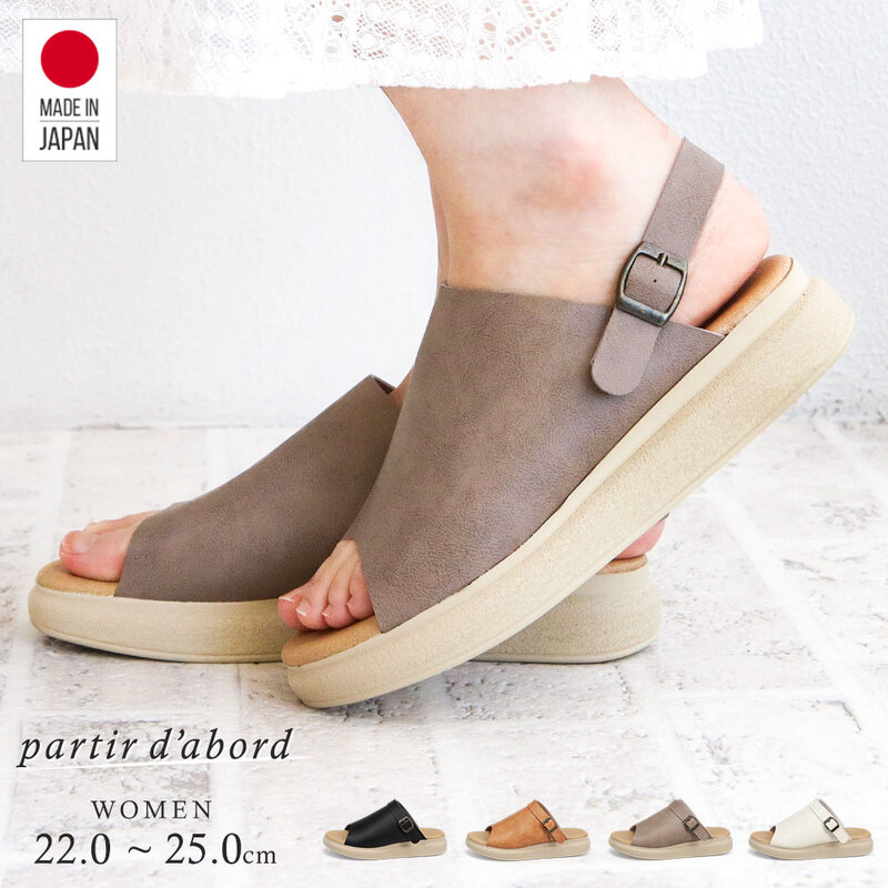 サンダル レディース ウェッジソール バックストラップ 厚底 オープントゥ 黒 ブラック 白 ホワイト パルティエダボール 日本製...