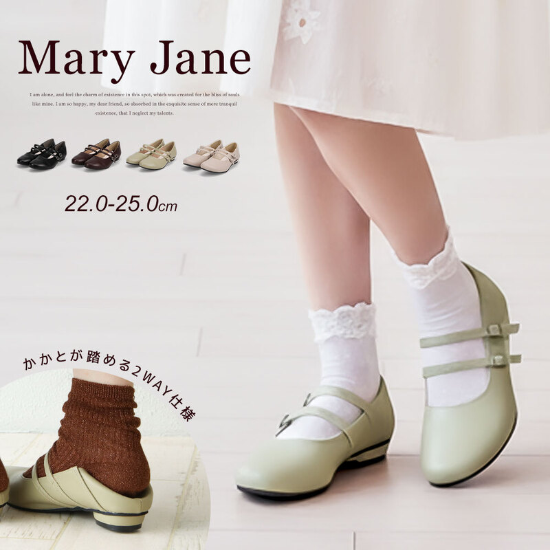 パンプス ストラップ フラット かかとが踏める バブーシュ 2way ぺたんこ ローヒール メリージェーン レディース 靴 おしゃ...