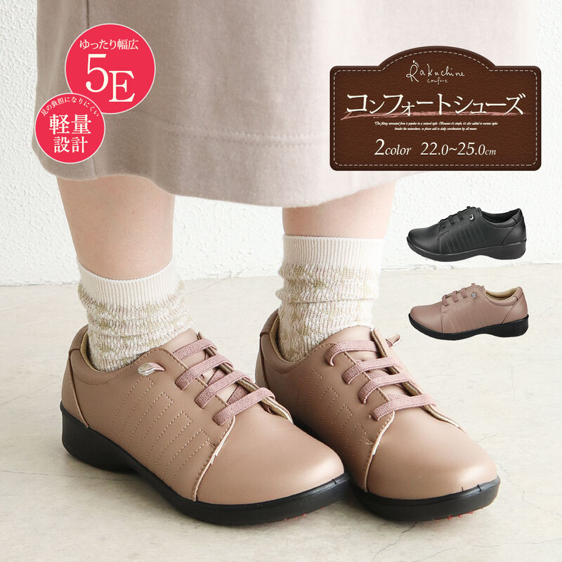 コンフォートシューズ レディース 5e 幅広 ゴム紐 軽い 防滑 女性 母の日 スリッポン 婦人靴 黒 ブラック ベージュピンク ...