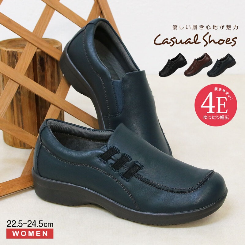 カジュアルシューズ レディース コンフォートシューズ おしゃれ 4e 幅広 甲高 スリッポン 黒 母の日 ギフト ブラック ブラウ...