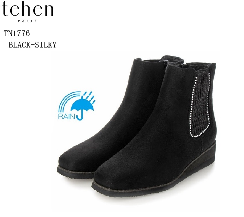 (テーン)tehen TN1776 ラインストーン付きサイドゴアカジュアルブーツ 撥水加工 レディス クッションインソールで履き心...