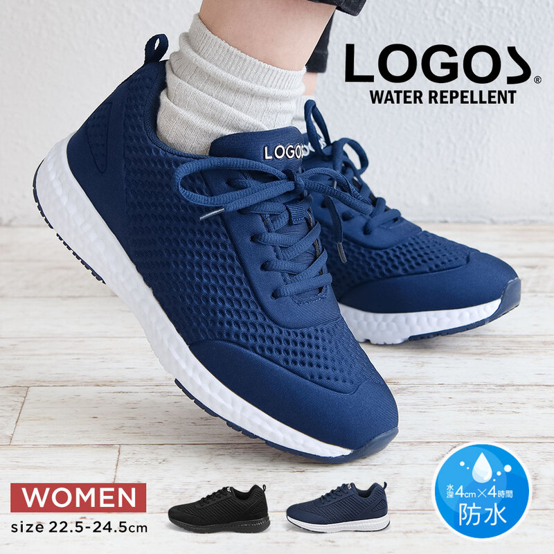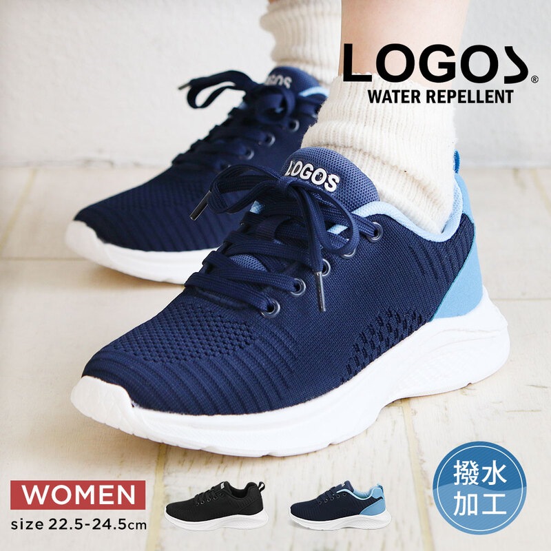 LOGOS レディース スニーカー ニット ローカット 撥水 軽い 靴 通気性 ウォーキングシューズ ジム フィットネス 黒 ネイ...