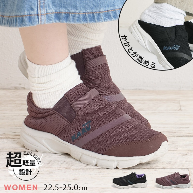 ウォーキングシューズ レディース スリッポン 軽量 かかとが踏める 履きやすい スニーカー コンフォートシューズ 黒 ブラック 赤...