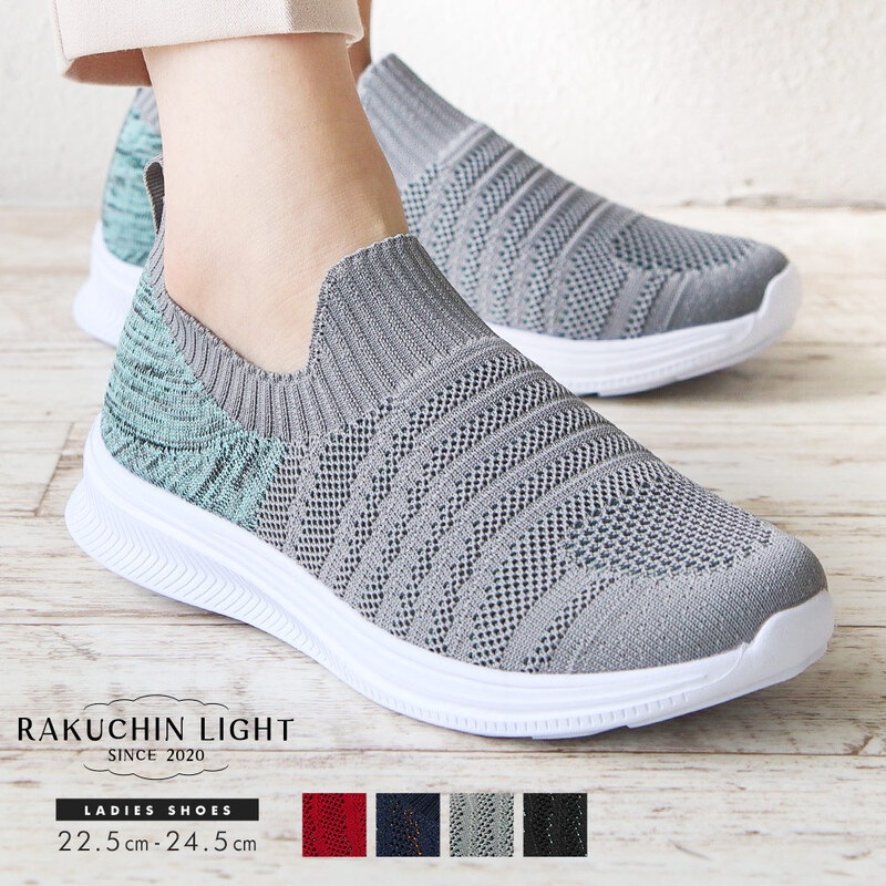 スリッポン レディース 黒 軽量 ウォーキングシューズ おしゃれ 痛くない RAKUCHIN LIGHT ブラック グレー レッ...