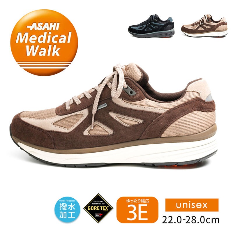 アサヒメディカルウォーク ウォーキングシューズ レディース メンズ 防水 ゴアテックス 3E 反射材 男性用 女性用 黒 ブラッ...