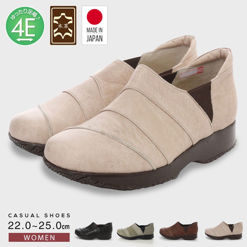コンフォートシューズ レディース おしゃれ 4e 幅広 日本製 本革 靴 牛革 軽い 黒 ブラック グレー ブラウン ベージュ 母...