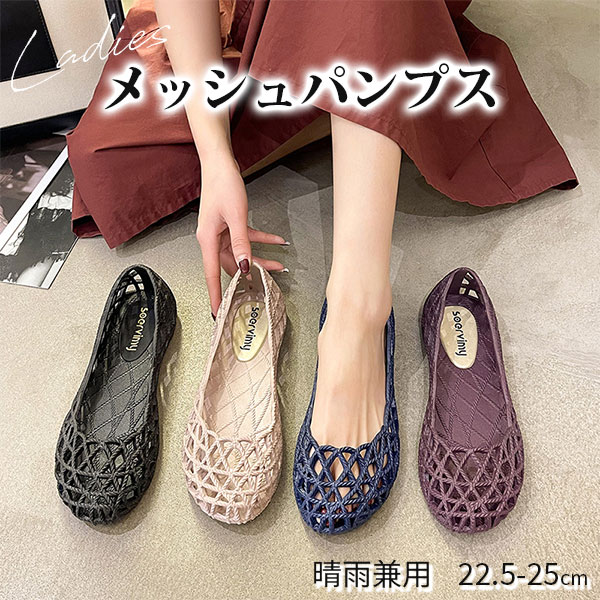 【即納】メッシュ パンプス ラバー素材 防水性 通気性 涼し気 快適 晴雨兼用 軽量 ローヒール 海 プール ビーチサンダル かわ...