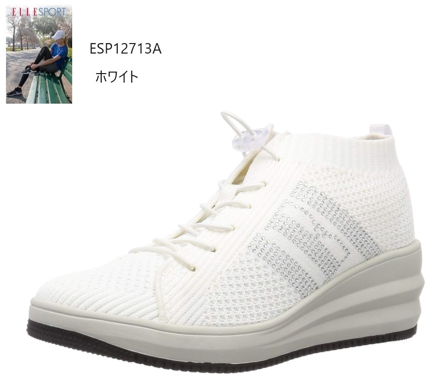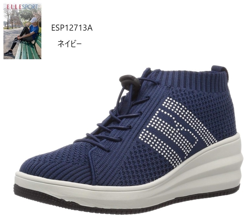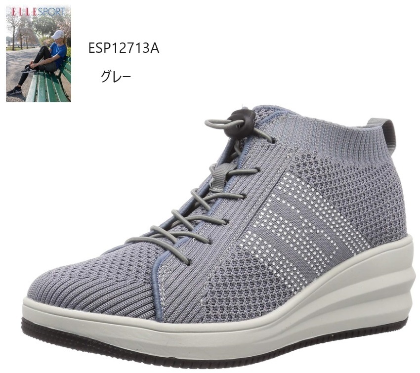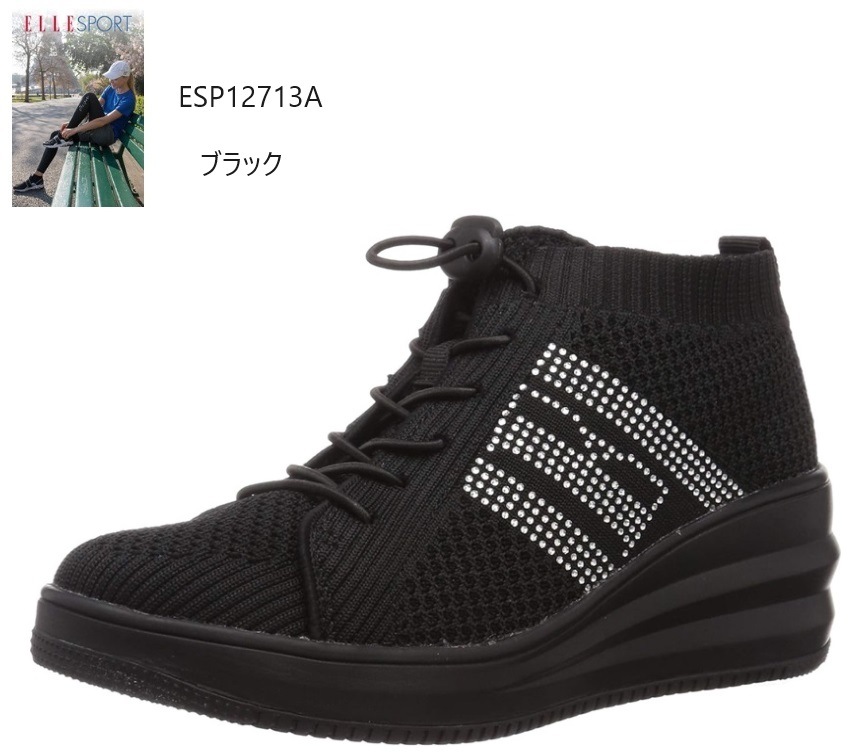 ELLE SPORT(エル スポーツ)ESP12713A レディス インヒール軽量厚底ニットブーツ ニット素材と靴ひもがゴムになっ...