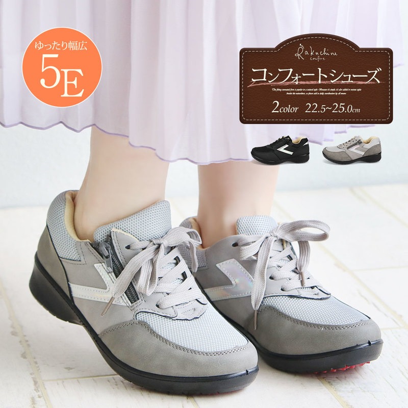コンフォートシューズ レディース 5e おしゃれ 旅行 軽量 ゆったり 幅広 外反母趾 ミセス 防滑 プレゼント 黒 ブラック グ...