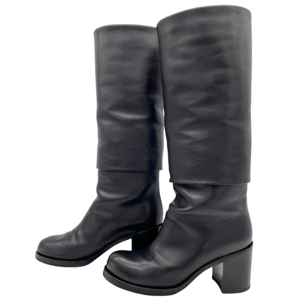 CHANEL シャネル ロングブーツ ココマーク レザー ブラック 36 1/2C(約23.5cm) G27808